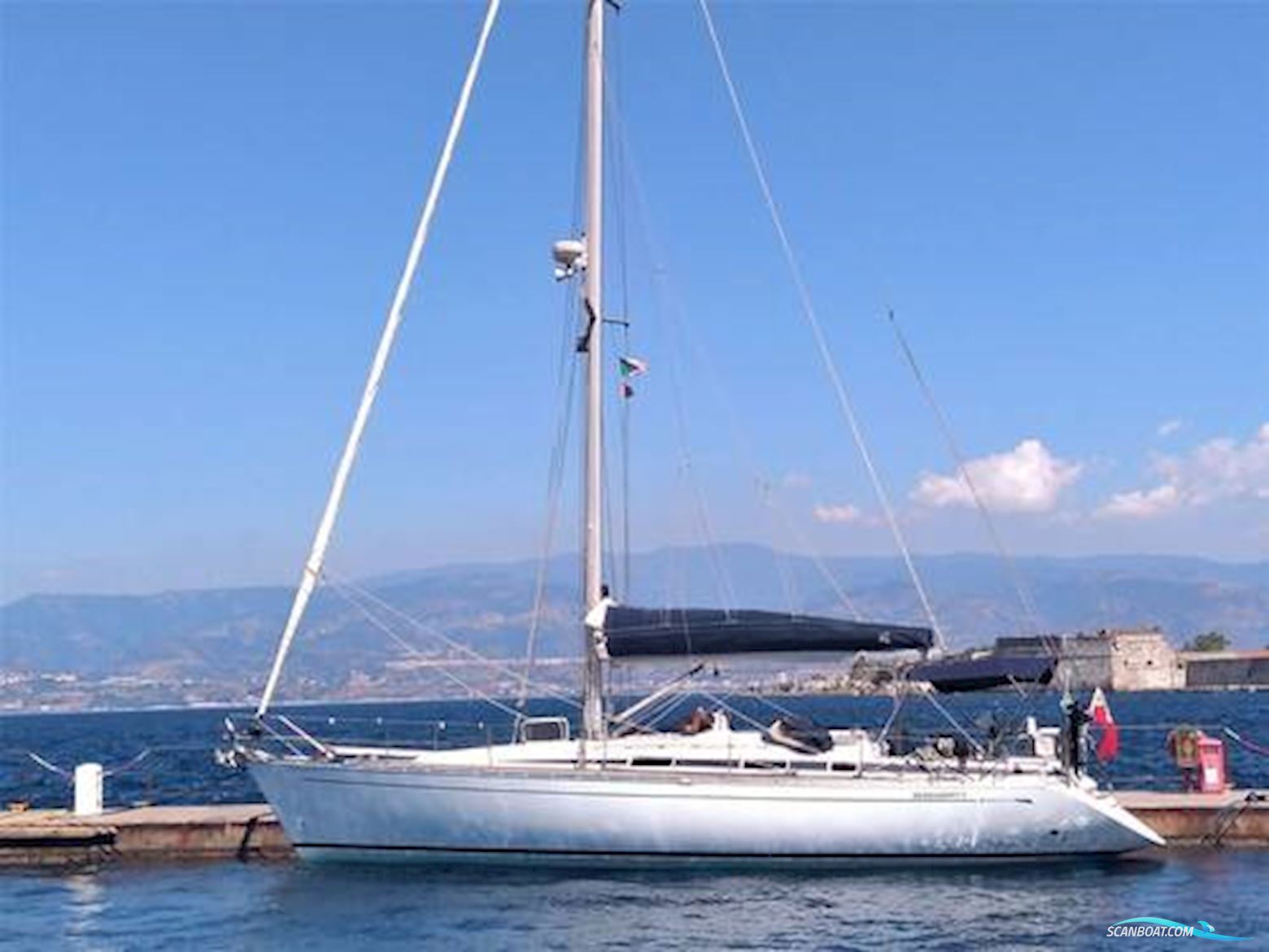 Inventar: DÆKUDSTYR. Dækstype: GRP med teak. Ankerluge. Primært anker: 20 kg Delta. Ankerkæde: 60m (dårlig stand). Anker spil: Lofrans. Vinsjer: Harken 2 x 56.2 ST, 2 x 44 ST 2 Speed, 2 x 40 ST 2 Speed. Pushpit / Pulpit. Badeplatform. Cockpit / dækbruser. Varmt og koldt. Cockpittabel (foldbar træ). Cockpitskabe. Cockpitpuder. Passarelle: Foldbar rustfrit stål og teak. NAVIGATIONSUDSTYR. Autopilot: Raymarine Autohelm ST6001 Plus. Kortplotter: 2 x Raymarine AXIOM 9 (ved navigationsstationen). GPS: 1 Raymarine Anetnna 2012 & 1 Garmin GPS II. Radar: Raymarine Pathfinder RL72 HSB. Hastighedsmåler: Raytheon ST60. Dybdemåler: Raytheon ST60. Vindmåler: Raymarine ST60. Navtex: ICS NAV 6Plus. Raymarine fjernbetjening med ST60-data og autopilotkontrol. VHF-radio: Standard Horizon Matrix AIS GX1200. Kompas: Plastimo Olympic 135. CANVAS. Sprayhood (Marineblå meget god stand. Nye vinduer 2019). Bimini. Cockpitpuder. Hjul og piedestalovertræk. Læder ruskindsovertræk på hjul. Lazy bag. SIKKERHEDSUDSTYR. Redningsflåde Valaise 4 personer i dato. Livbøjer. Redningsveste. Danbuoy. Flydende lys. Fakler. EPIRB. Tågehorn. Brandslukkere. Brandslukningsdække. Lensepumper: Manuel og elektrisk. Generel note om sikkerhedsudstyr: Alt sikkerhedsudstyr såsom redningsflåder, brandslukkere og fakler osv. er normalt personlige for de nuværende ejere og hvis de efterlades om bord som en del af salget af et brugt fartøj, kan kræve rutinemæssig service, udskiftning af den nye ejer og må ikke bruges i forhandlinger om pris. DINGHY. Gummibåd: Arimar. Gummibådsmotor: Johnson 4 hk.